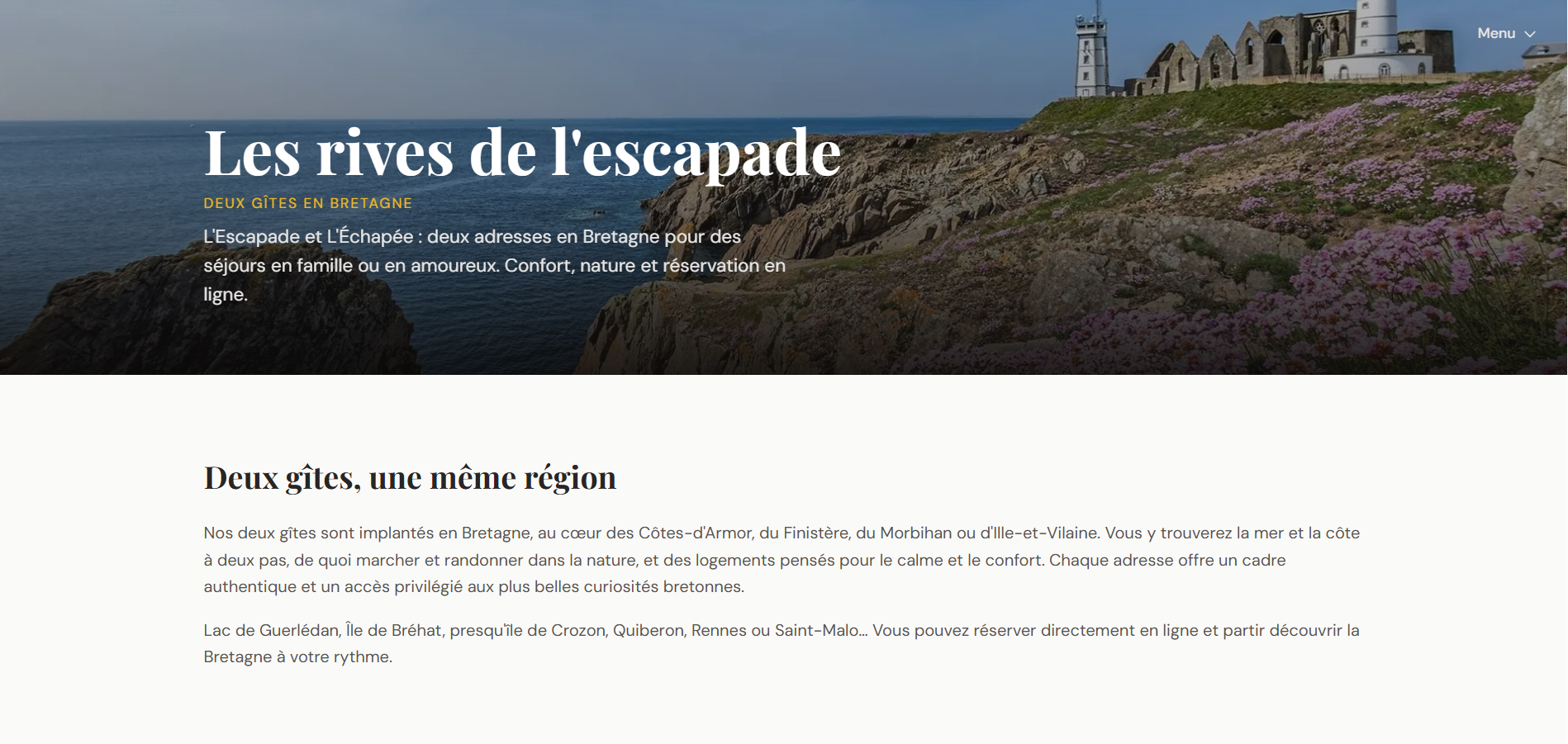 Un site dédié à vos gîtes, à votre image, avec galerie, carte et formulaire de contact.