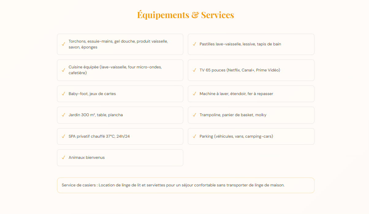 “Interface simple, site pro. Nos clients trouvent tout : photos, équipements, calendrier et formulaire de contact. Parfait.”